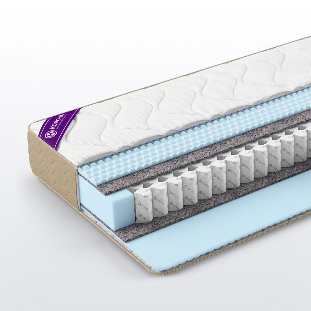 Блок независимых пружин TFK 500 - конструкция из высокоуглеродистой закаленной стали, в которой каждая пружина упакована в отдельный чехол из спанбонда и работает локально. Матрас не скрипит, а пружины защищены от коррозии и пыли.