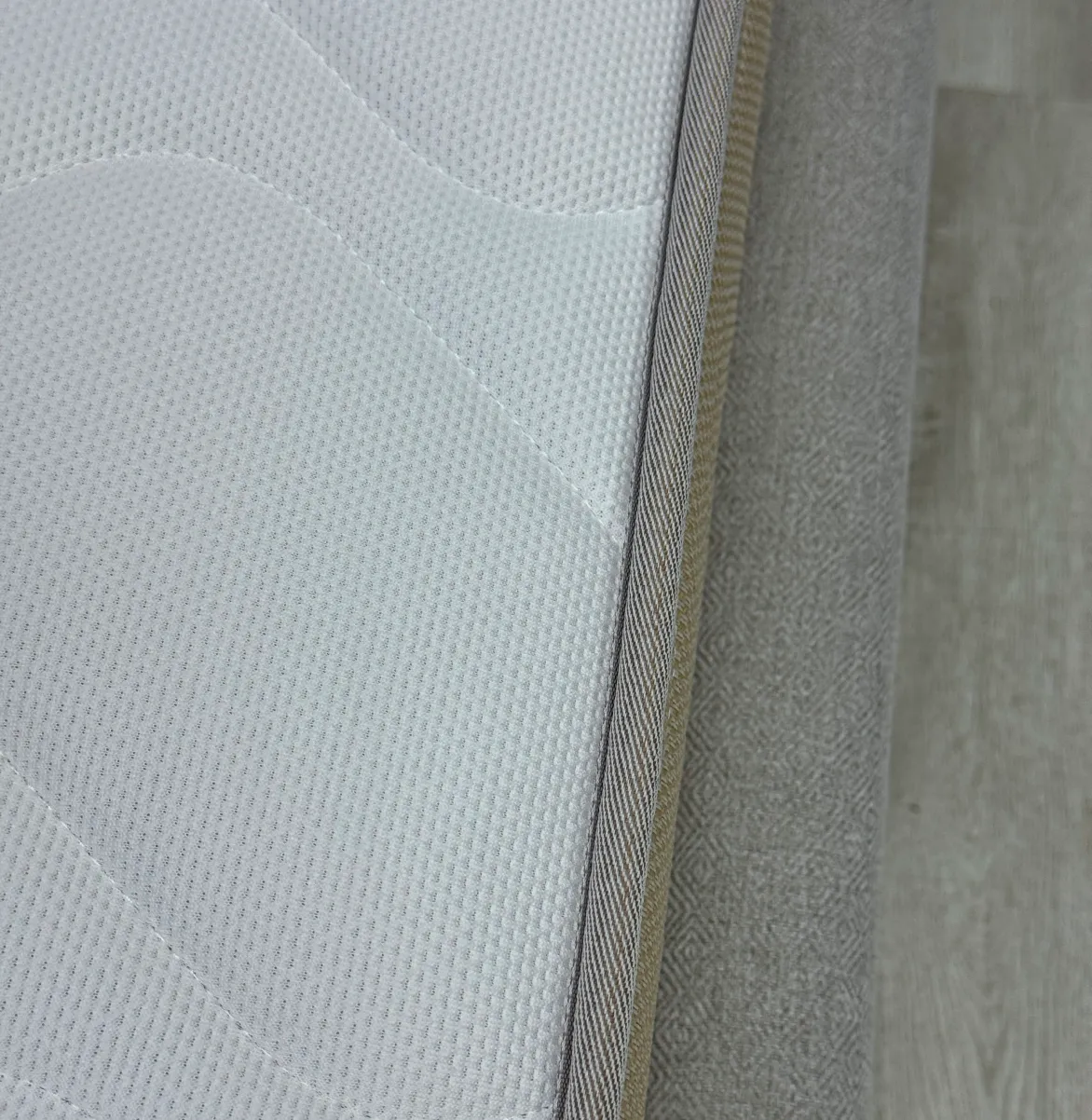 Короб из ППУ усиливает жесткость конструкции пружинных моделей по краям матраса, предотвращая их проседание при регулярной нагрузке. Это особенно важно при локальных нагрузках на борт матраса при посадке и подъеме с матраса. В наших моделях используются два вида пен - стандартной марки у изголовья и повышенной плотности в боковых зонах.