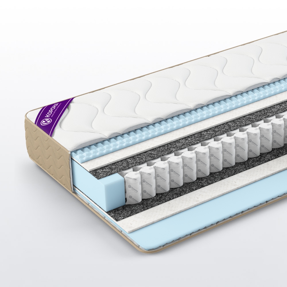 Блок независимых пружин TFK 500 (16 см) - конструкция из высокоуглеродистой закаленной стали, в которой каждая пружина упакована в отдельный чехол из спанбонда и работает локально. Матрас не скрипит, а пружины защищены от коррозии и пыли.
