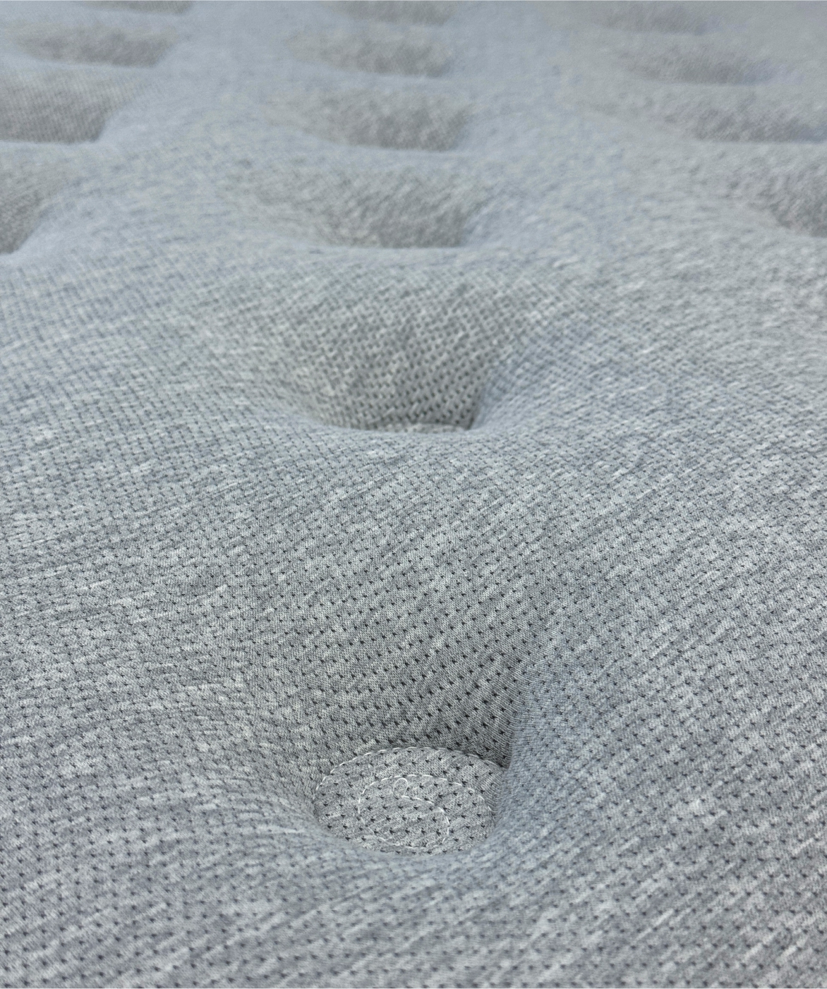 Трикотаж «Pescody» - премиальный меланжевый итальянский трикотаж с натуральными волокнами в трендовом приятном сером цвете. Благодаря своей расцветке ткань смотрится стильно и более неприхотлива к незначительным загрязнениям. Натуральные смесовые нити в составе способствуют более эффективному тепло обмену и обладают высокой гигроскопичностью, что обеспечивает комфортный микроклимат спального места