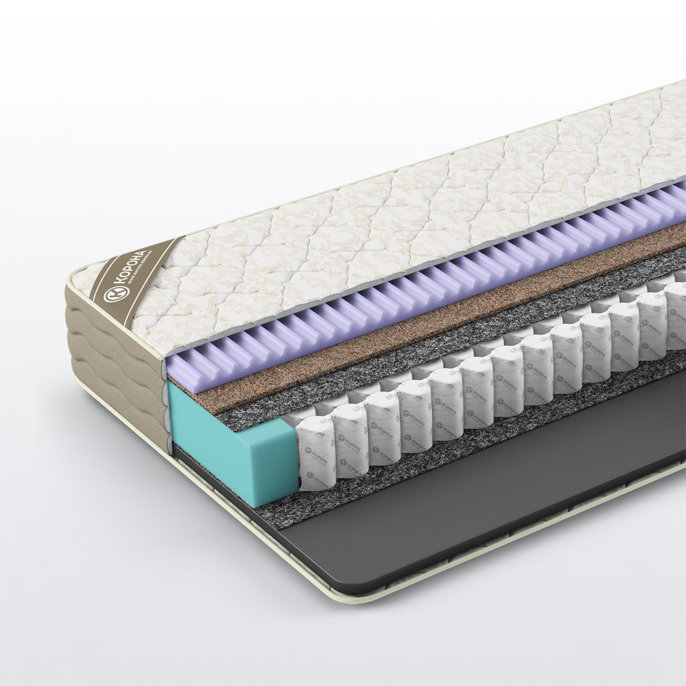 Самая популярная модель в серии, подходящая широкому кругу пользователей. Рифленая пена высокой плотности в качестве мягкого наполнителя имеет большой ресурс прочности и обладает высокими показателями комфорта. В сочетании с кокосовой койрой данная пена способна выдерживать большие весовые нагрузки без потери эксплуатационных качеств. Сторона с угольной пеной «Carbon Foam» обладает средней жесткостью и рекомендована для сна на спине.