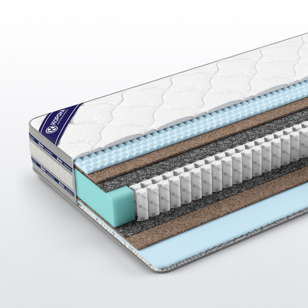 Модель, подходящая для большинства пользователей, предпочитающих среднюю жесткость спального места. Сочетание анатомического блока, наполнителей и чехла позволяет получить оптимальное соотношение цены и качества. Натуральная кокосовая койра в сочетании с пенополиуретаном выдерживает значительную весовую нагрузку. Поверхность матраса одновременно и умеренно-жесткая, и не оказывает излишнее давление на ткани и мышцы пользователя.