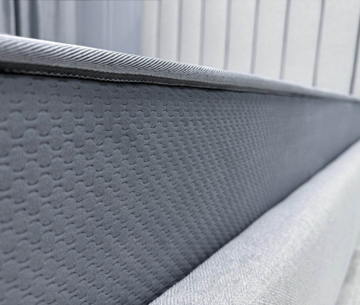 Бурлет из мебельного велюр - Бурлет матраса выполнен из плотного износостойкого велюра «SOTA GREY» с ярко выраженной текстурой. Данная ткань имеет высокую устойчивость к истиранию, не растягивается, а это значит, что матрас дольше и лучше сохранит свой первозданный внешний вид.