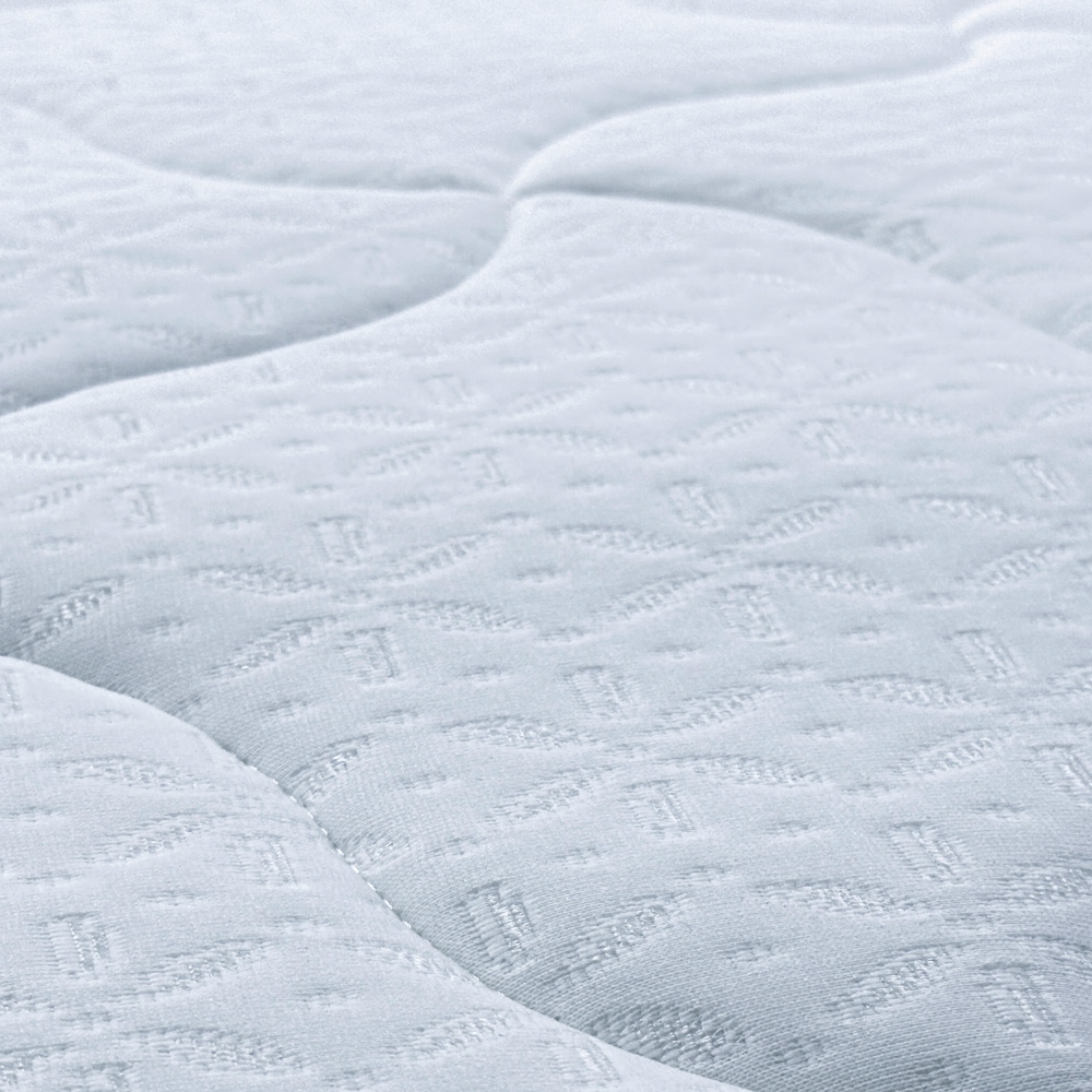 Трикотажная ткань «FLORA» имеет высокую эластичность и широко применяется в массовом сегменте матрасов. Она хорошо себя зарекомендовала, как практичная, хорошо справляющаяся с нагрузками (в том числе при сжатке и скручивании матраса). Ткань легковентилируемая, что обеспечивает комфортный микроклимат спального места.