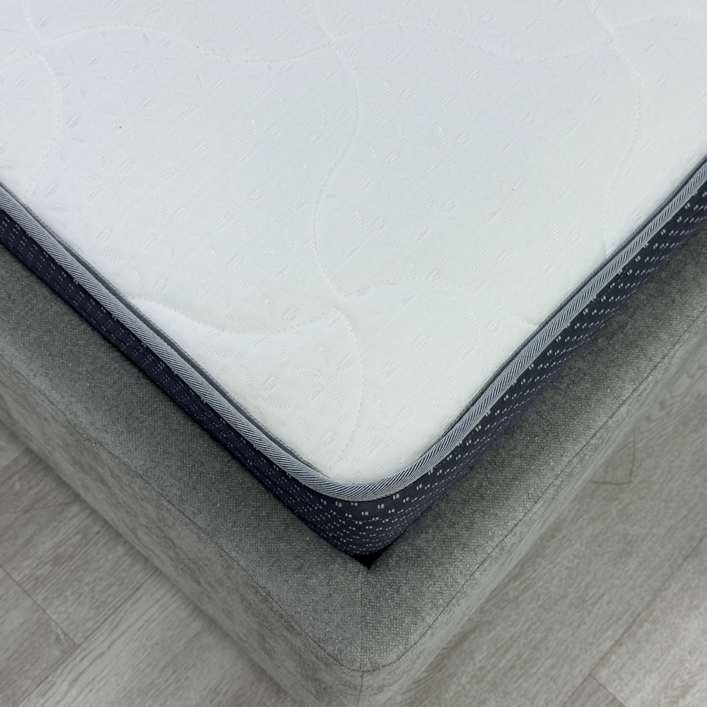 Короб из ППУ усиливает жесткость конструкции пружинных моделей по краям матраса, предотвращая их проседание при регулярной нагрузке. Это особенно важно при локальных нагрузках на борт матраса при посадке и подъеме с матраса. В наших моделях используются два вида пен - стандартной марки у изголовья и повышенной плотности в боковых зонах.