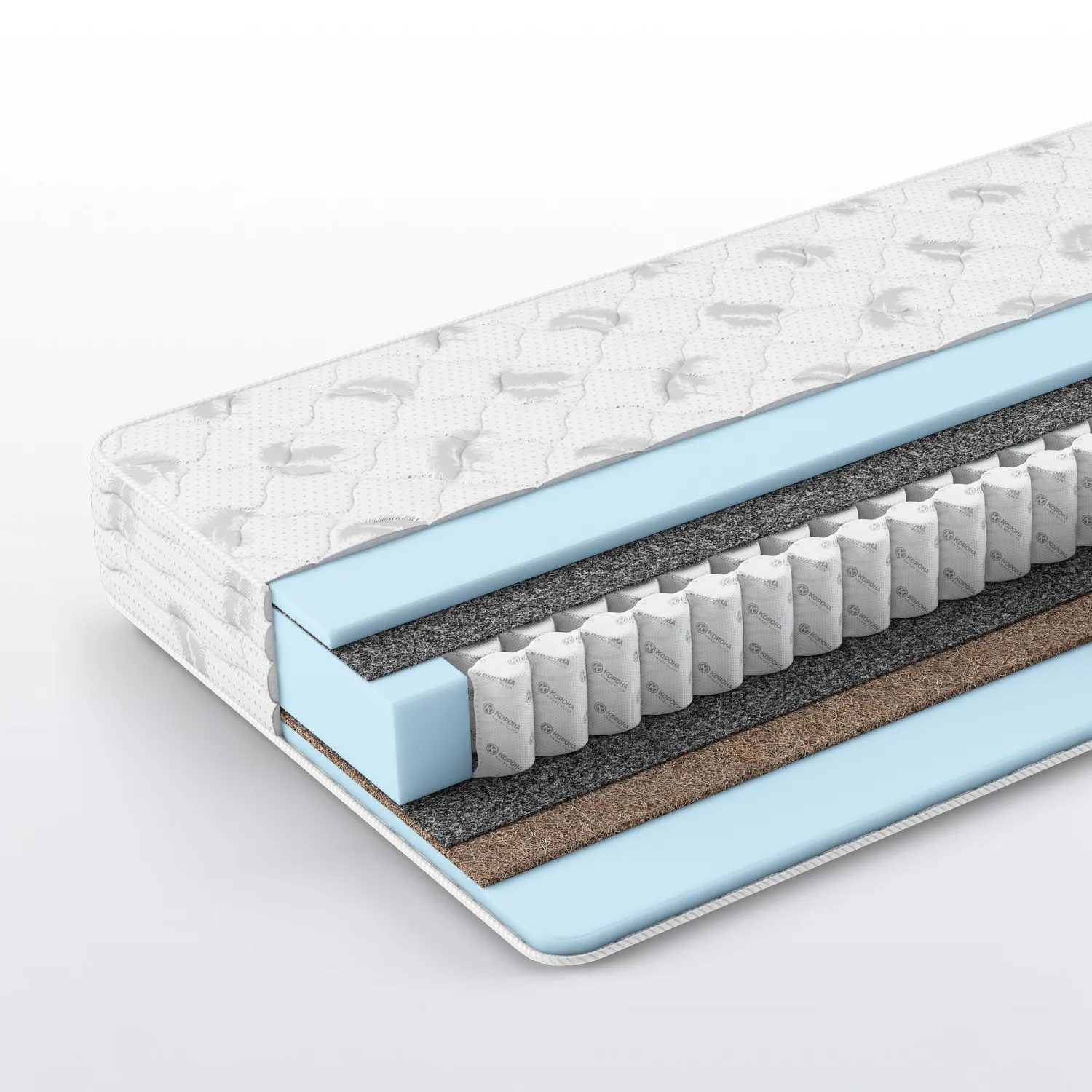 Кокосовая койра 5 мм - натуральный наполнитель из спрессованных волокон кокосового ореха, пропитанных специальным составом на основе натурального латекса. Чрезвычайно прочен и долговечен, придает упругость и жесткость матрасу. Гипоаллергенный, нетоксичный материал. Не подвержен гниению и не является средой обитания клещей и прочих паразитов. Обладает самой низкой остаточной деформацией, естественной влаго - и теплопроводностью.